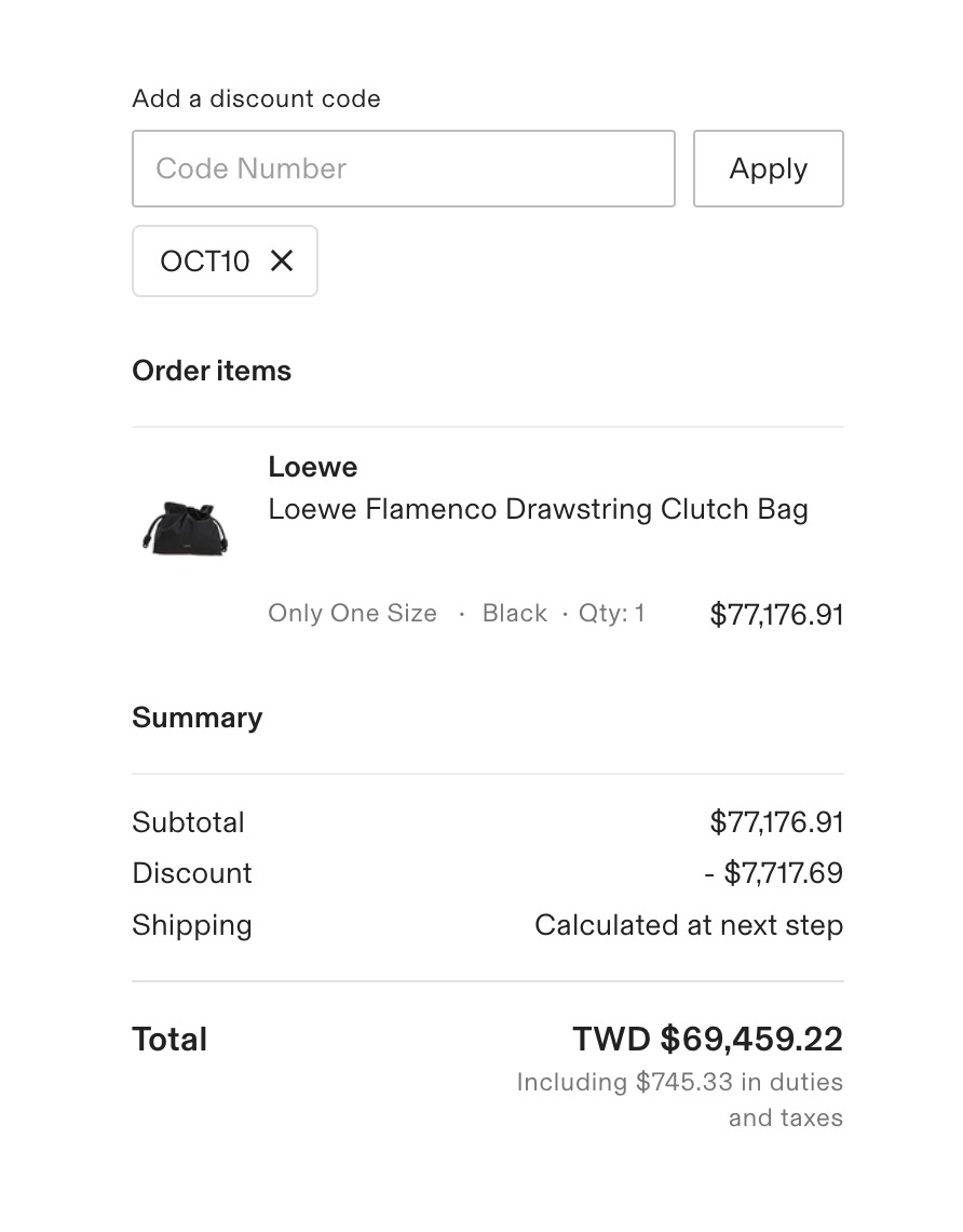 真的很哭!昨晚半夜群友問我的包,我剛發現 cettire 額外九折後比 FWRD 未稅前還要再便宜四千台幣!FWRD 折後未稅價約台幣 108,074, cettire 折後含稅只要 104,188.83,台灣專櫃 162,000,約 64 折!