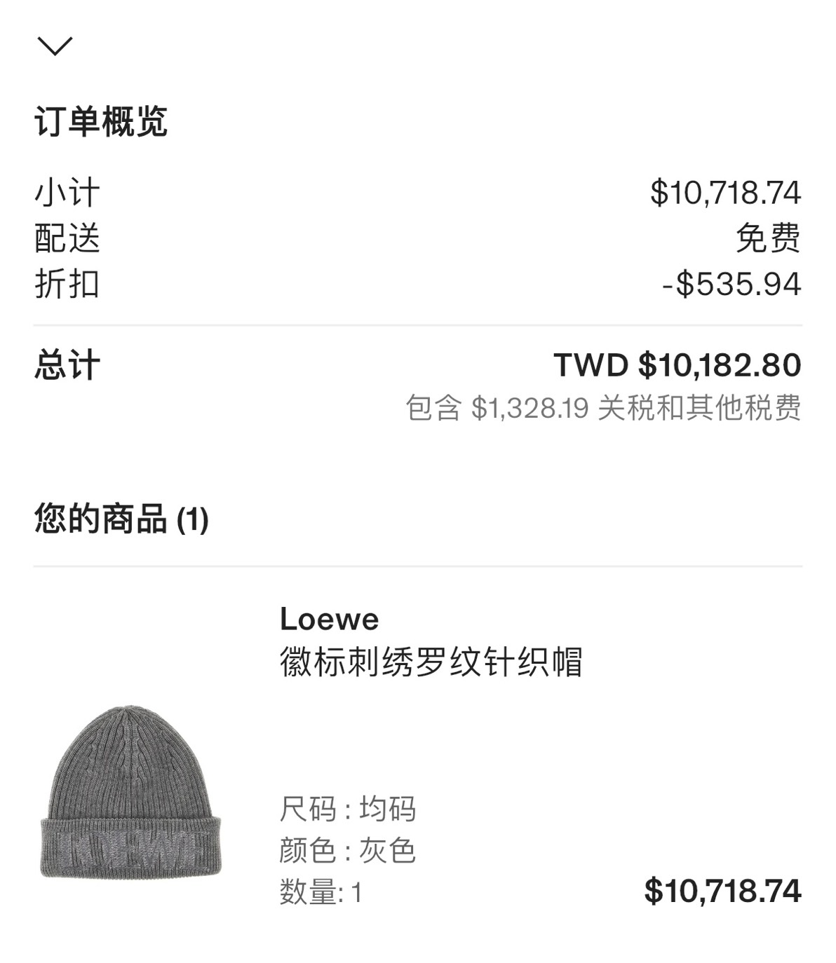Loewe Logo 毛帽官網 13,000,特價10718+95 9折=10,182 9,646,約78 74折!