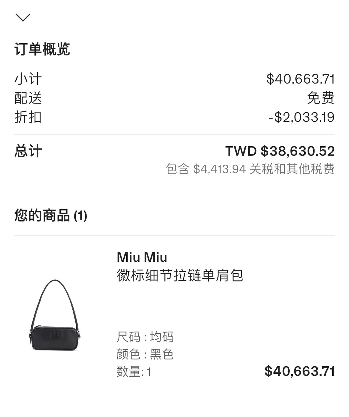 第一次看到價格這麼甜的Miu Miu!小紅書都叫飯盒包、麻將包!其實就是腋下包!預算台幣三萬多可收!黑色突然降價 41,318 40,663+95折=38,629!台灣55,000=7折!