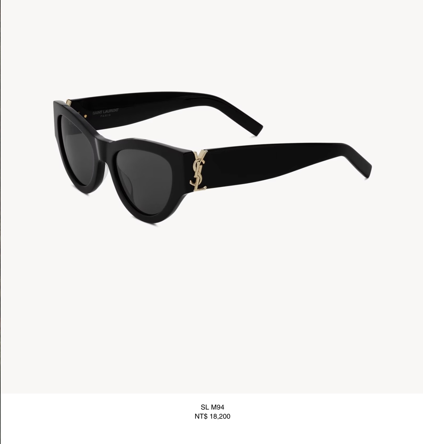 Rose 常常戴的 Saint Laurent M94 太陽眼鏡,NT$9,973+95 9折=9,474 8,975,台灣 NT$17,600 漲價至 18,200 =52 49折!