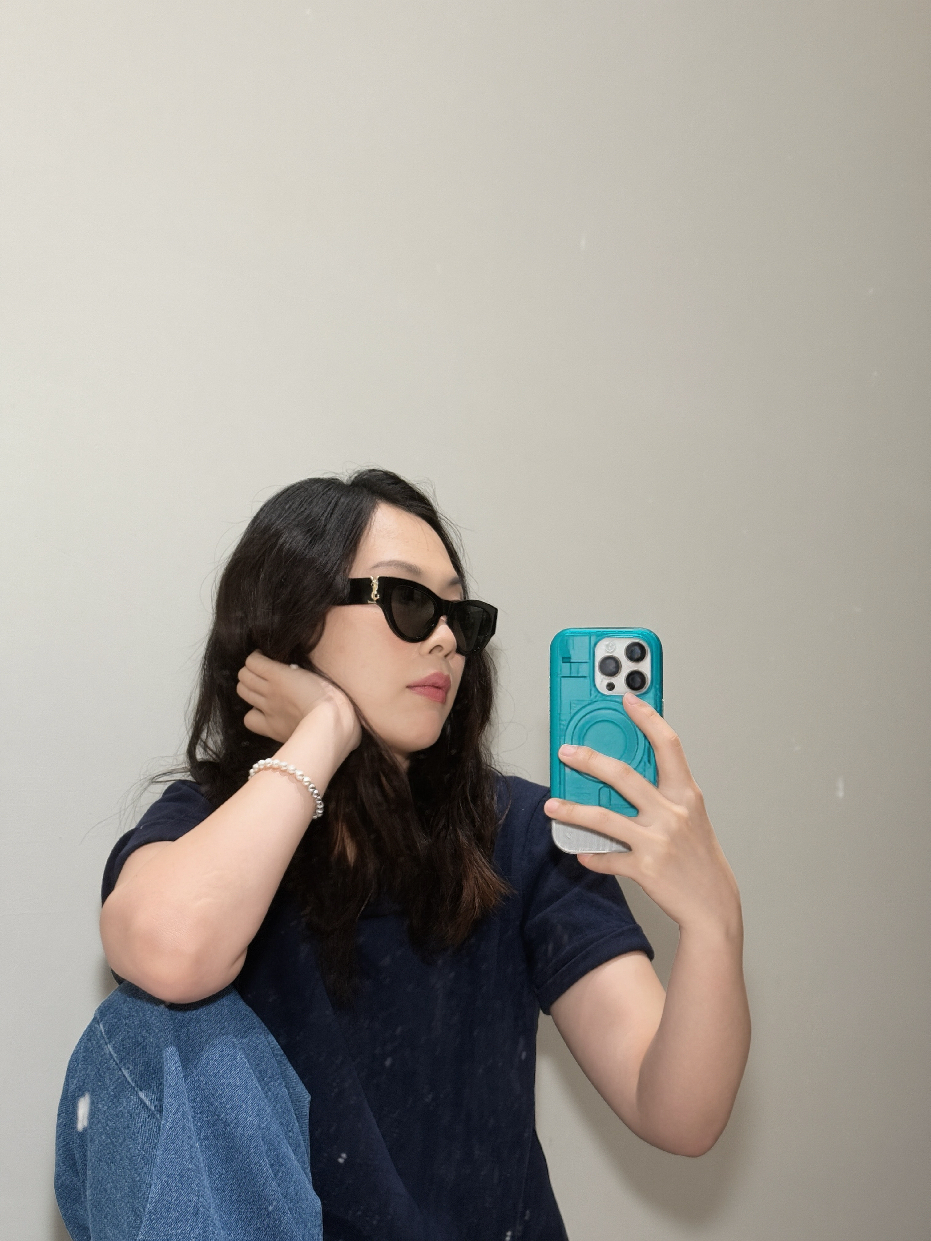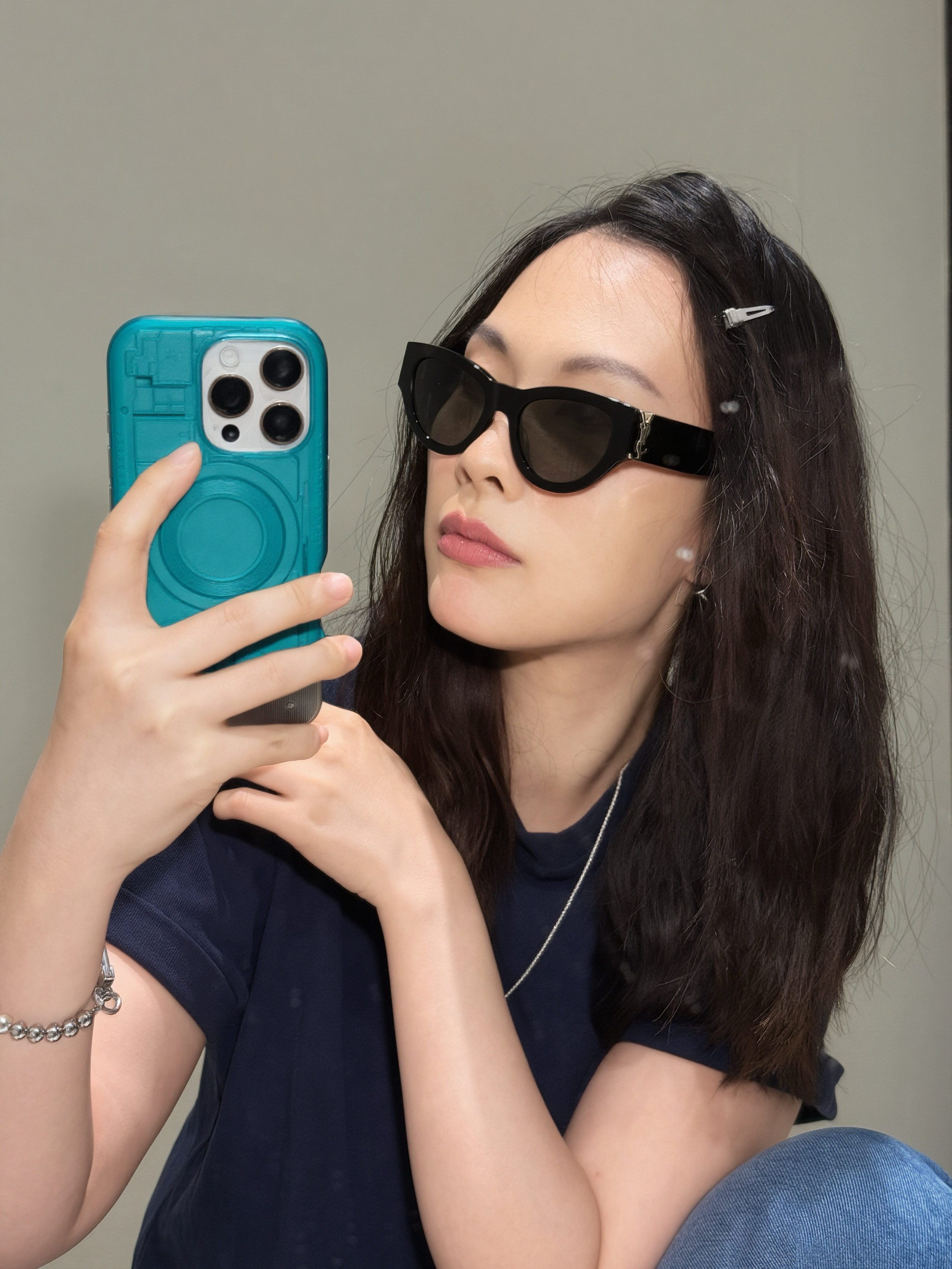 我戴的是 International Fit,但意外超合!上臉穩、放頭上也不會掉,比我自己的 Celine 凱旋門橢圓框 還更貼頭型。