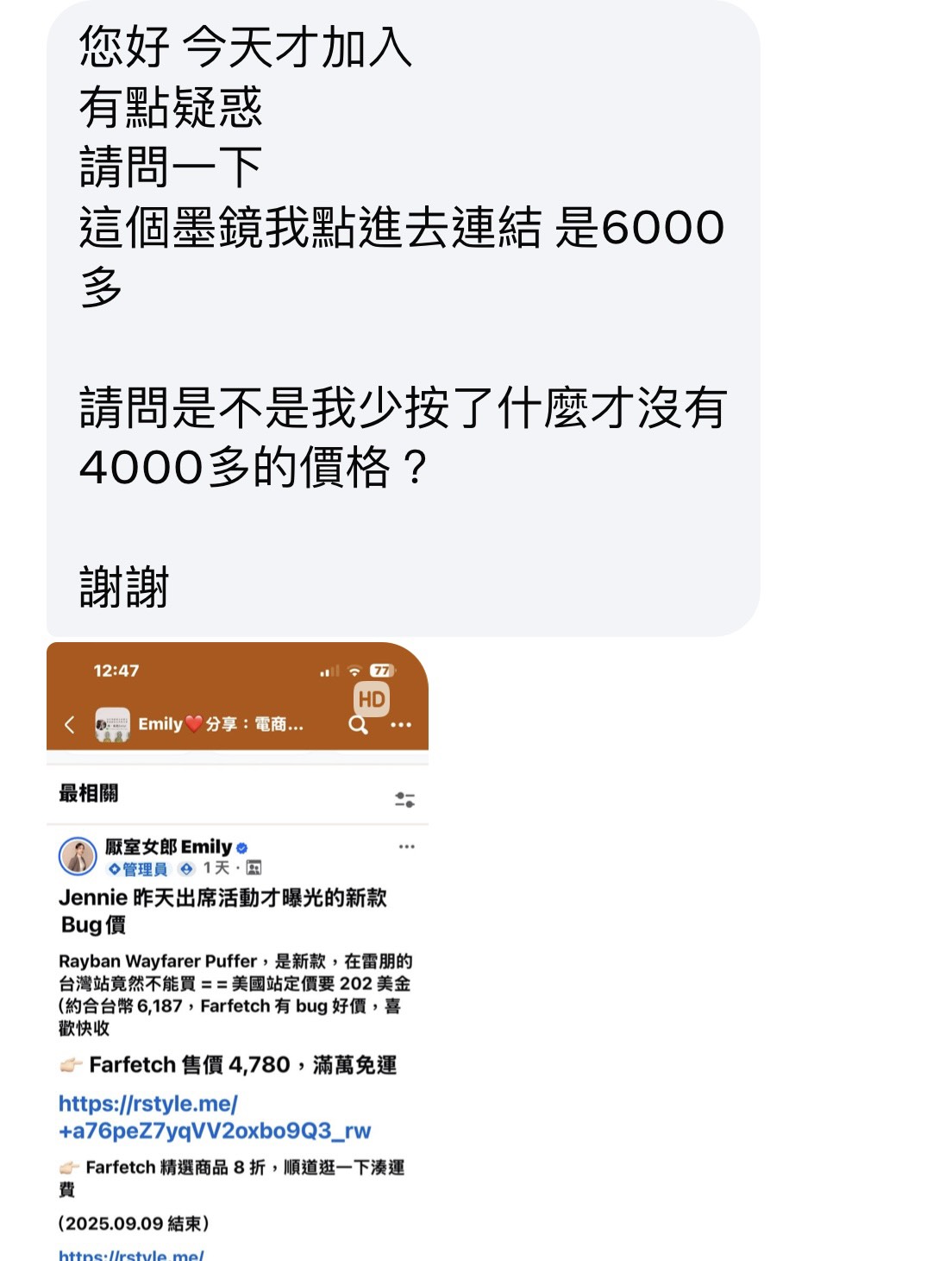 Farfetch正價品 75 折!Jennie 同款雷朋墨鏡 67 折!