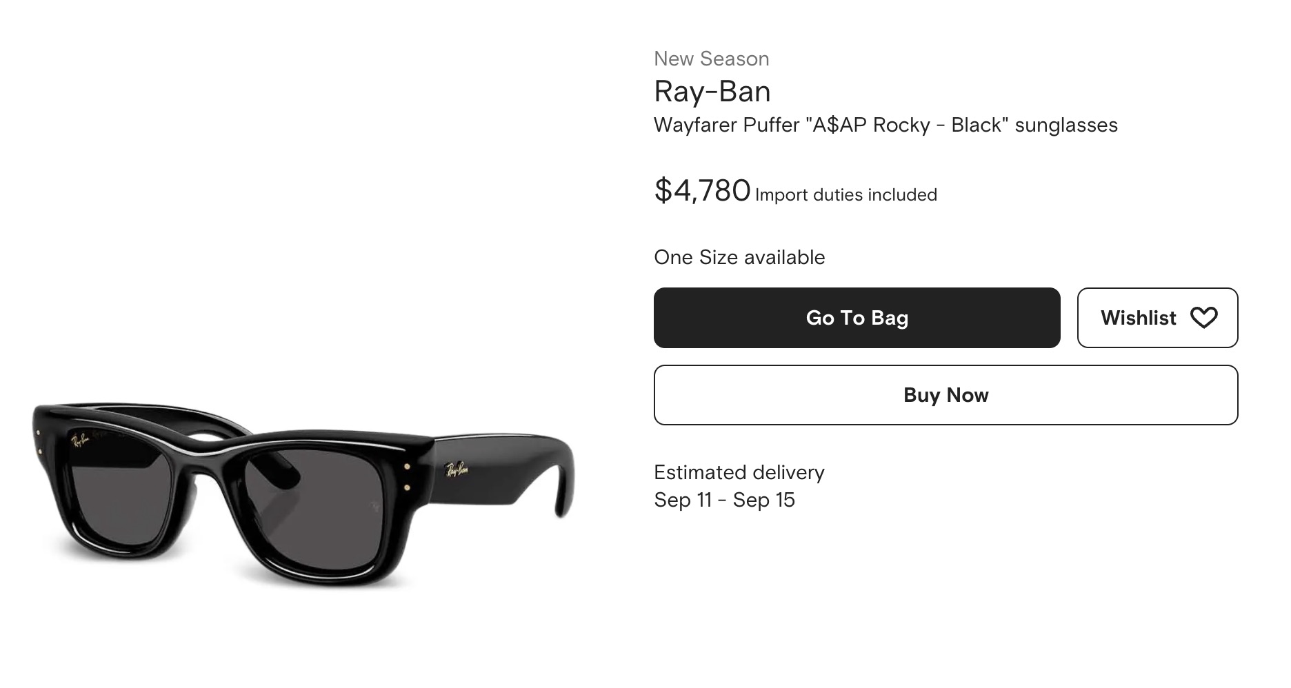Ray-Ban Wayfarer Puffer “A$AP Rocky – Black” sunglasses ▶按此購買 ◀