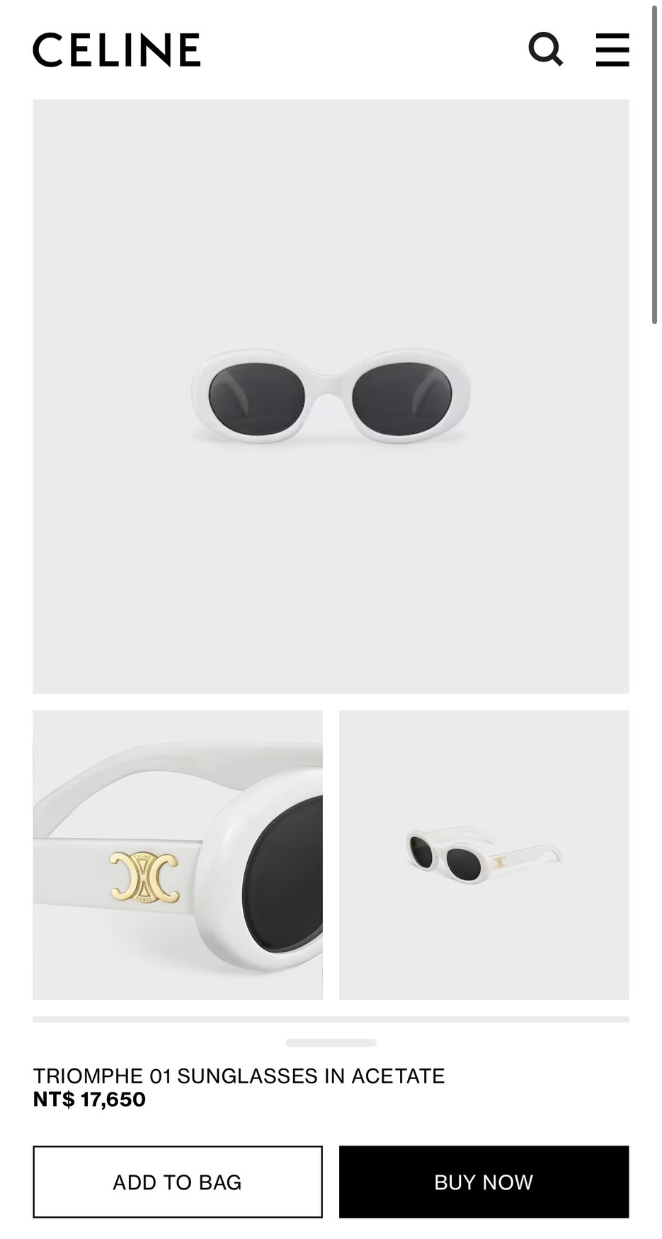 Celine 白色凱旋門橢圓框墨鏡 ▶按此購買 ◀