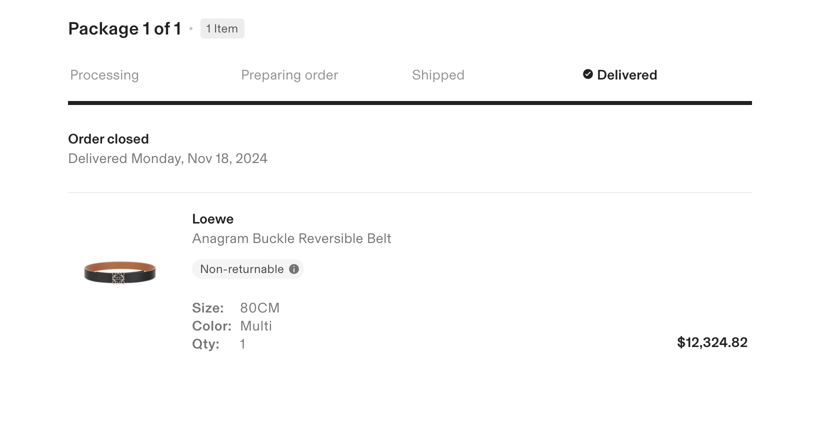 購買金額:Loewe 經典堤花雙面皮帶3公分寬,太好搭了我也入手了一條!一面棕色一面黑色,當時特價 12,324.82,打額外九折後 NT$11,092.34,官網定價 NT$18,000,是 62 折!我自己是買 80 cm,可以中低腰,高腰的話會買 75 cm。