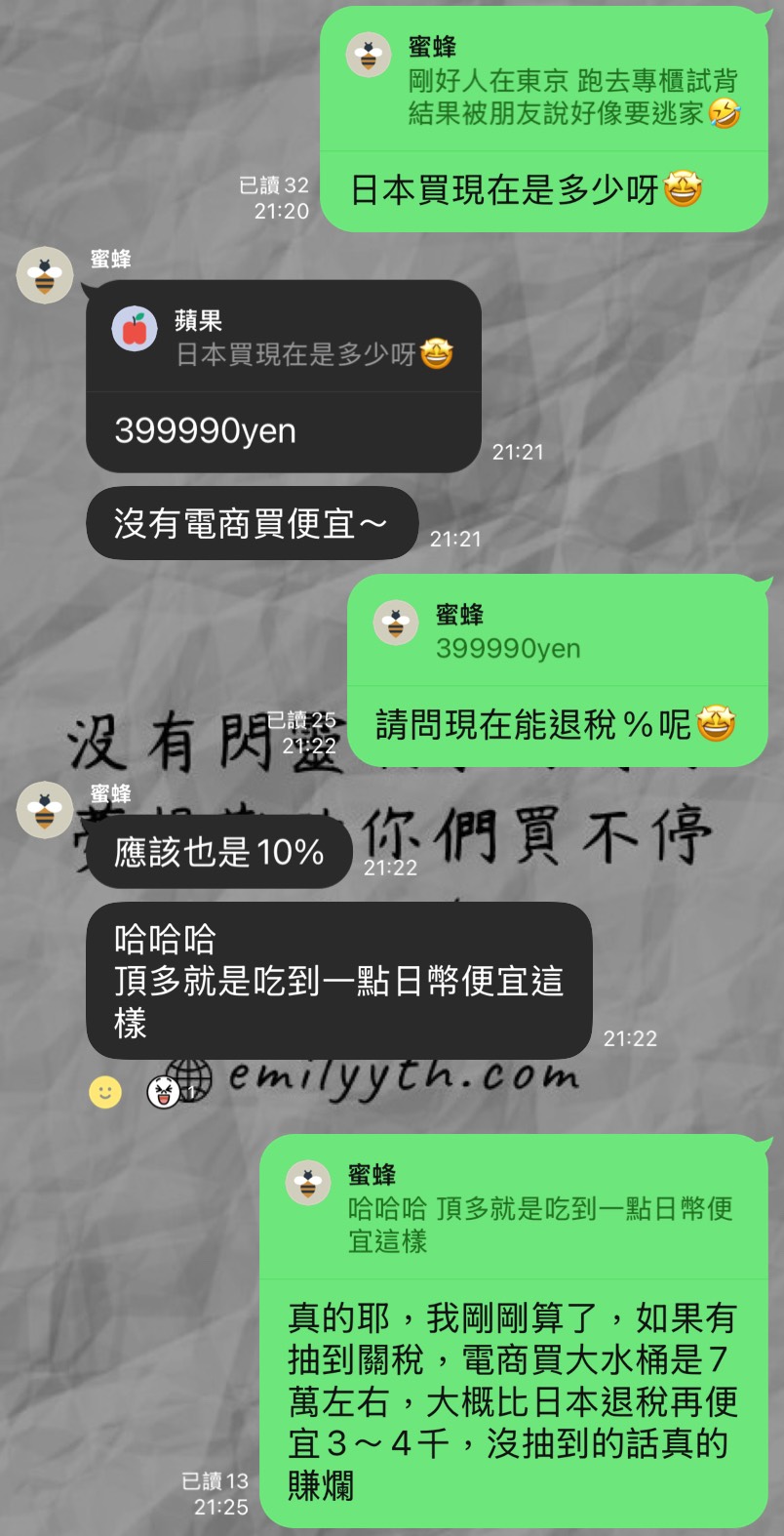 📍 群友 C:「我剛好人在東京跑去專櫃試背,日本買完退稅也不見得比 FWRD 便宜,真的還是線上划算!」